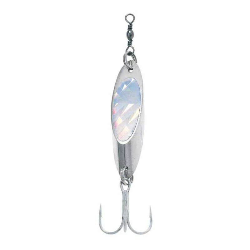 Extra schwerer, taumelnder Blinker mit verchromter Oberfläche. Zum Fischen im Süß- und Salzwasser geeignet.