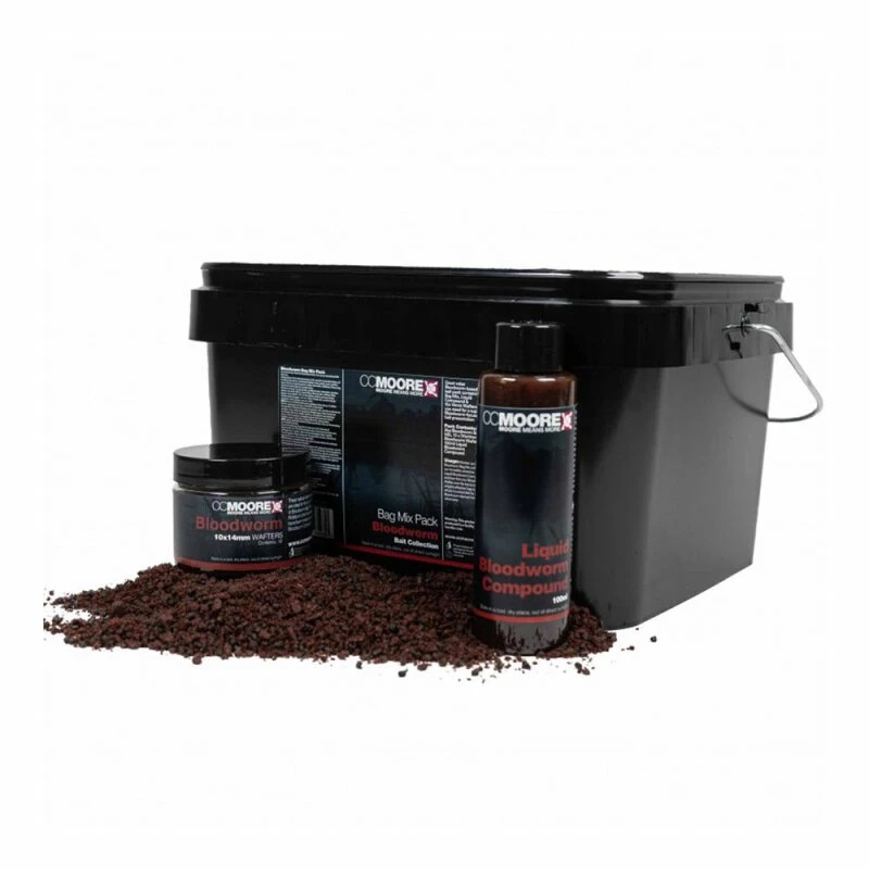 Preiswertes Blootworm-Köderpaket mit 2 kg Blootworm-PVA-Beutelmischung, 100 ml flüssiger Blootworm-Mischung und 10 Blootworm-Wafter 10 x 14 mm, alles in einem schwarzen Markenköder-Eimer; alles, was Sie für eine hervorragende, auf Blutwürmer ausgerichtete Köderpräsentation benötigen. Ideal für den ganzjährigen Einsatz.