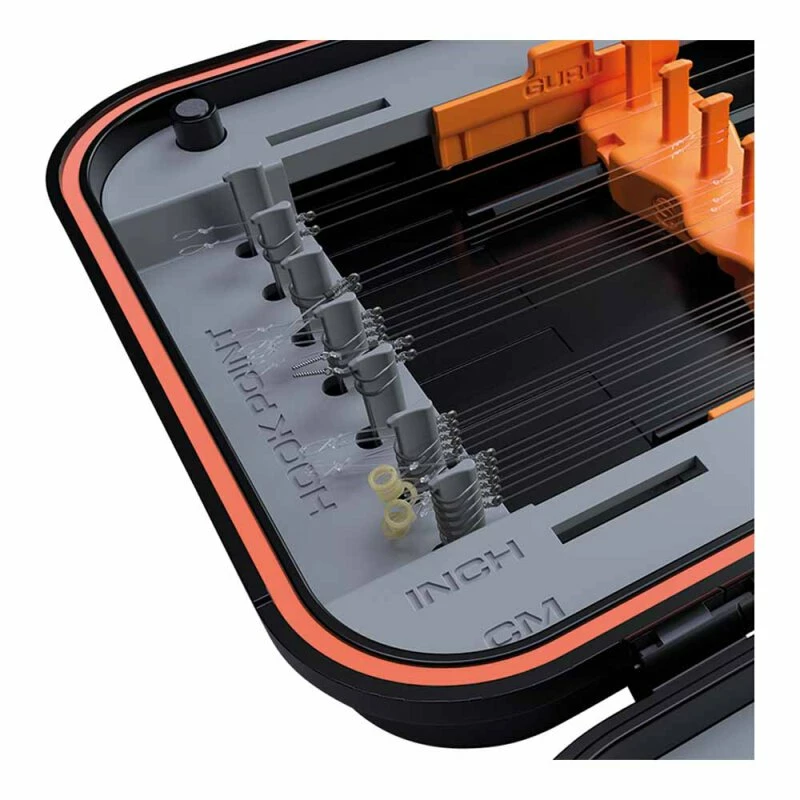 In dem Case befinden sich Messmöglichkeiten, die etwas erhöht sind, sodass Angler schnell und einfach seine Vorfächer messen kann, während sie sie binden, bevor sie sie hineinlegen. Die Stifte sind auch extra lang, sodass Sie viele Haken an ihnen befestigen können, wobei die Cases problemlos mehr als 600 Vorfächer aufnehmen können!