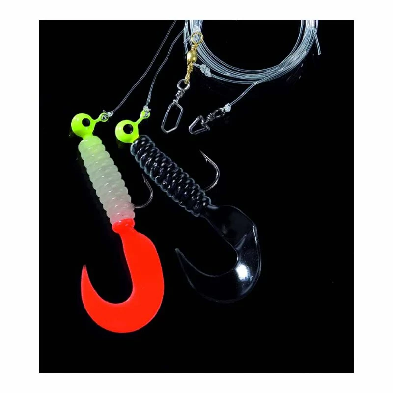 DEGA hat seine Meisterangler gebeten, das „Nähkästchen“ ihrer erfolgreichsten Pilkvorfächer aufzumachen. Und hier sind sie, die Top-Vorfächer des Teams, alle handgebunden, mit besten Kompomnenten: Seitenarme aus der bekannten DEGA-Vorfachschnur hochwertige Aberdeen-Haken für den Twisterkopf und vor allem mit den fängigen DEGA-Twistern in verschiedenen Farben. Jig-Gewicht ca. 3,5 g – Hakengr. 2/0