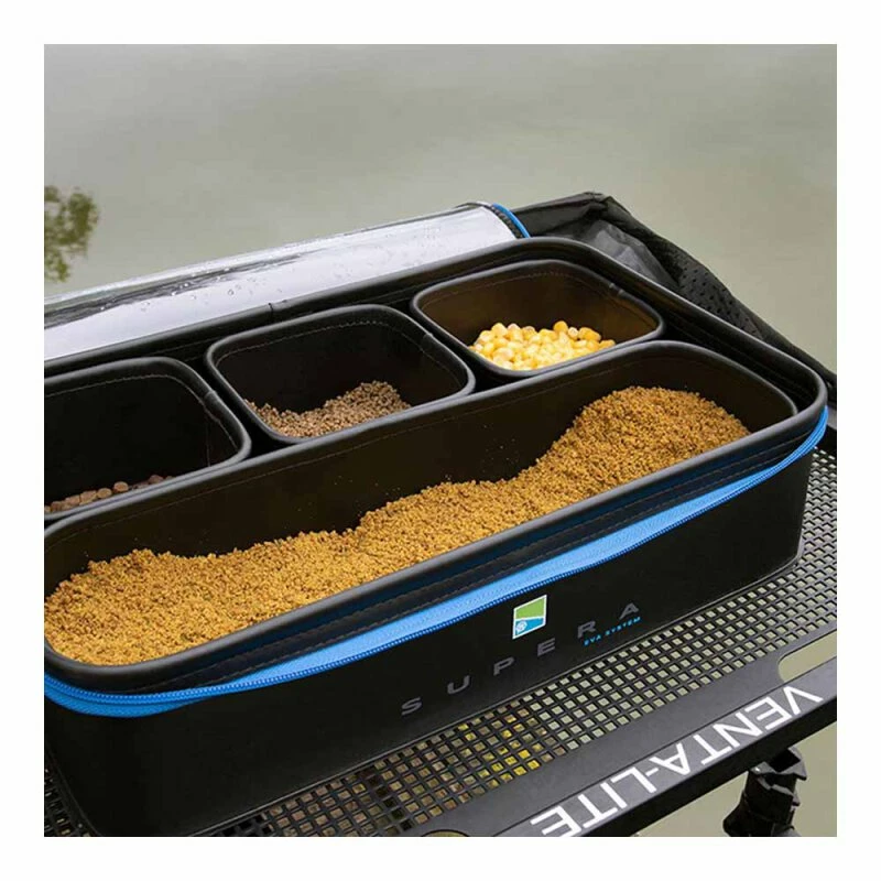Ein raffiniert konstruiertes Köderaufbewahrungssystem, mit dem Sie eine Reihe von Köderwannen oder Kleinteile sicher zu Ihrem Angelplatz tragen können. Das System besteht aus einem starken, langlebigen und 100% wasserdichten EVA-Material und verfügt zudem über einen durchsichtigen Kunststoffdeckel mit Reißverschluss für bequemen Zugang.