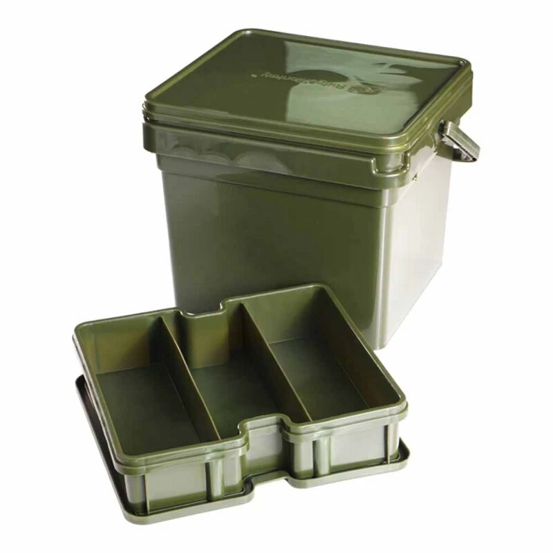 In Übereinstimmung mit dem RidgeMonkey-Trend für Effizienz und Komfort ist das Compact Bucket System kein gewöhnliches Bucket. Es ist mit einem herausnehmbaren, flachen Innenfach ausgestattet, das weiter in drei einzelne Abschnitte unterteilt ist und verfügt über einen eigenen Deckel, mit dem das Fach als eigenständiges Aufbewahrungsfach und als perfekte
