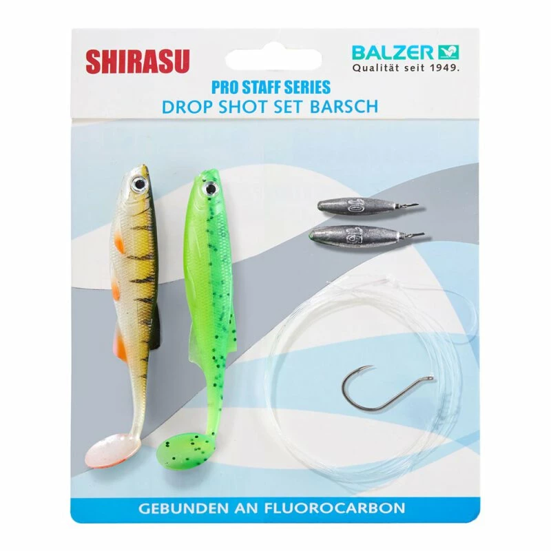 Fluorocarbon-Dropshot Rig 1,50m/0,27mm, Hakengr. 2, 2 x Dropshotblei: 10+15g, 2 x Shad2go Lemon Pepper und Hot Perch 7,5cm.