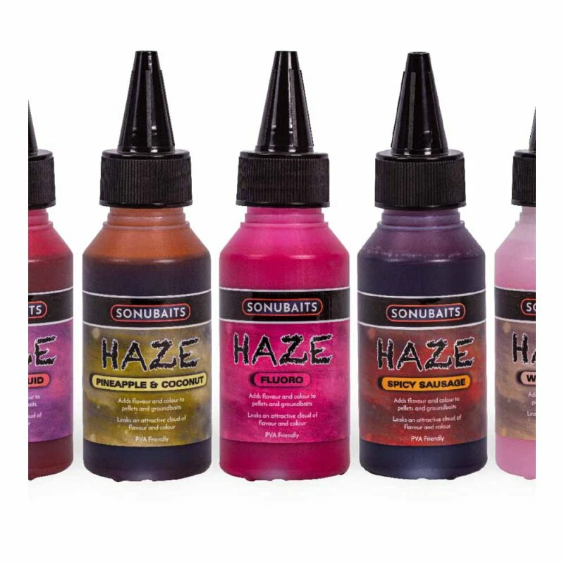 Haze ist eine Palette neuer Flüssigkeiten, die dazu entwickelt wurden, Ihre Hakenköder, Pellets oder Grundköder vor der Verwendung zu verbessern, zu färben und zu aromatisieren. Die im Vergleich zu Lava dünnere Konsistenz macht sie äußerst benutzerfreundlich und ganzjährig verwendbar, aber immer noch dichter als Wasser, so dass sie an Ihrem Köder haftet und um ihn herum bleibt und eine attraktive Farb- und Duftwolke in die unmittelbare Umgebung abgibt.